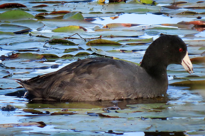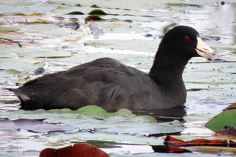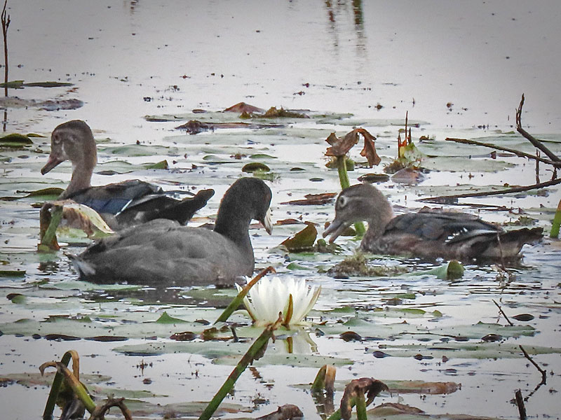 The Coot hanging out with a pair of young Wood Ducks (Aix sponsa).