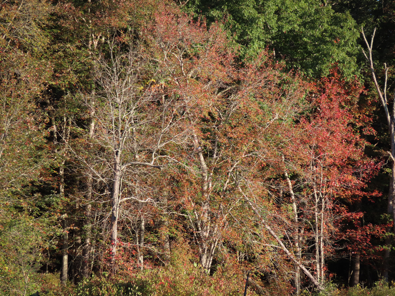 In this view, the bird is still right behind that tree trunk - and just about exactly in the middle of the photo.