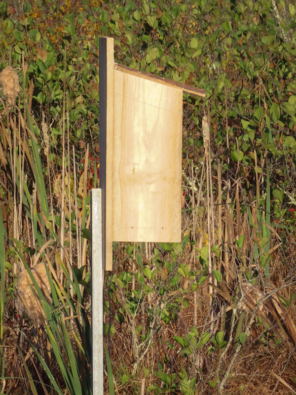 October 2nd. The female Belted Kingfisher (Ceryle alcyon) atop the new wood duck house.