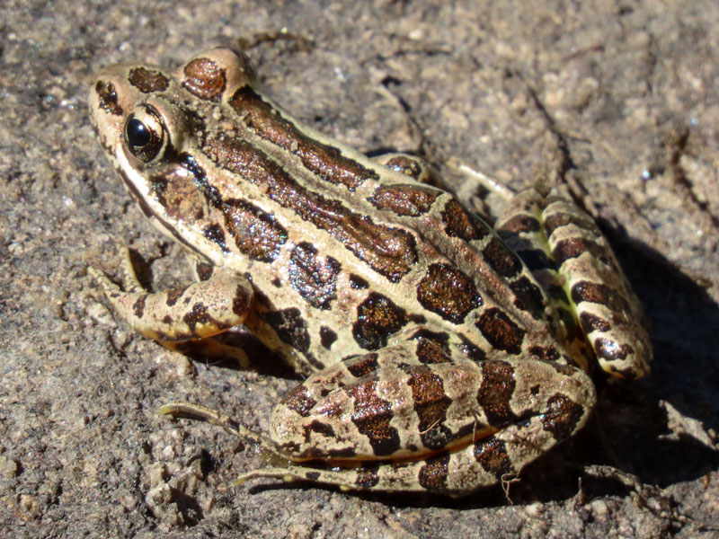 Two Pickerel Frogs (Rana palustris) on a boulder.