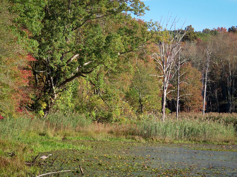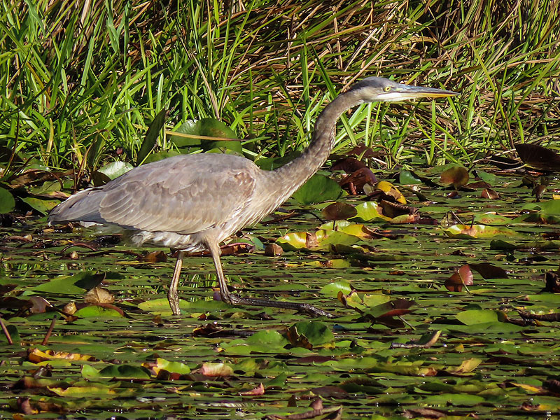 Norton's Pond. Great Blue heron (Ardea herodius) at the lower left.