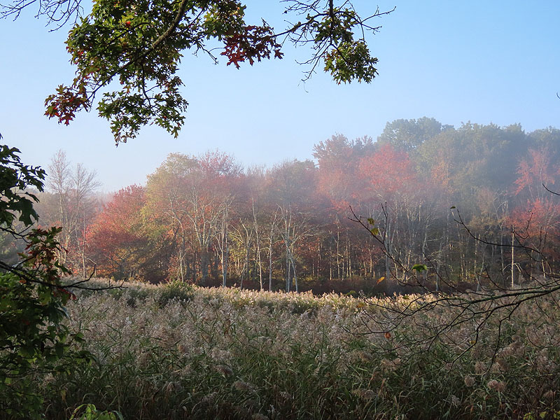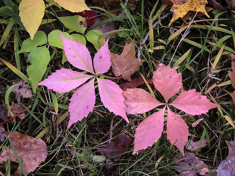 Killing some time before a local business opened, I walked East (north on the compass) along the Colchester Spur from Crouch Road in Amston to the former United Distillers building and pond. A few pictures along the way. Virginia Creeper (pink) and Poison Ivy (green and yellow).