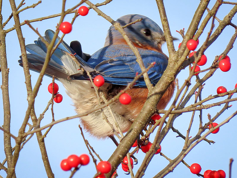 November 17h. The flock of Eastern Bluebirds (Sialia sialis) was around.