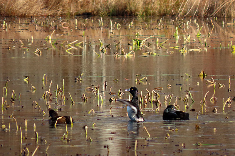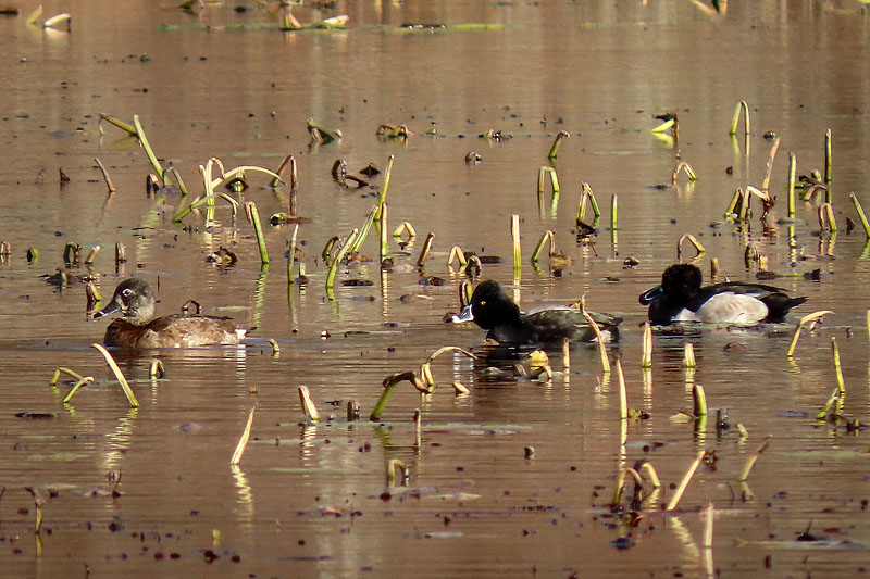 November 18th. Three Ring-necked Ducks (Aythya collaris) at the pond east of Route 207.
