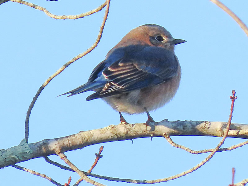 One of a flock of Eastern Bluebirds (Sialia sialis).