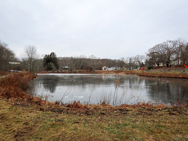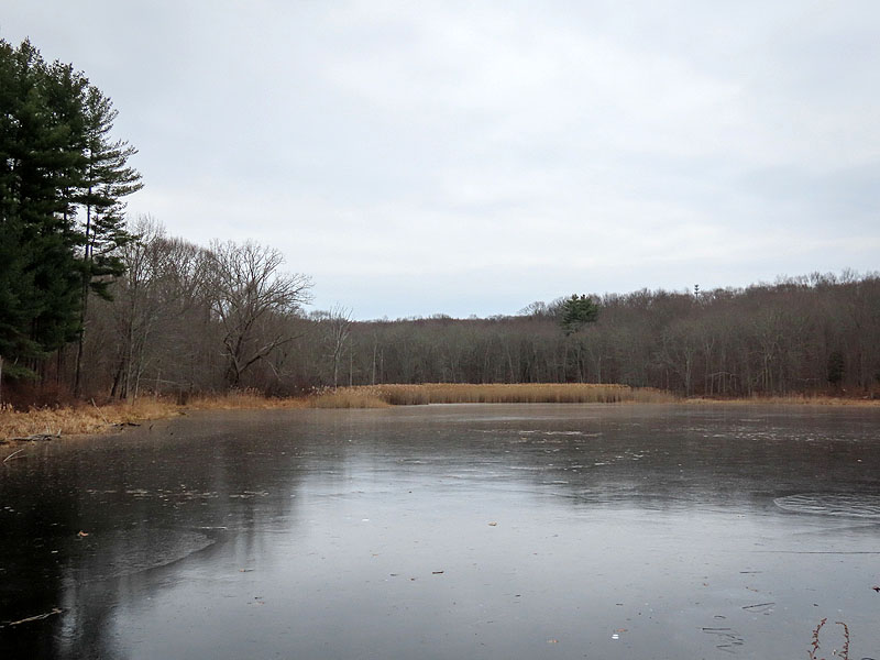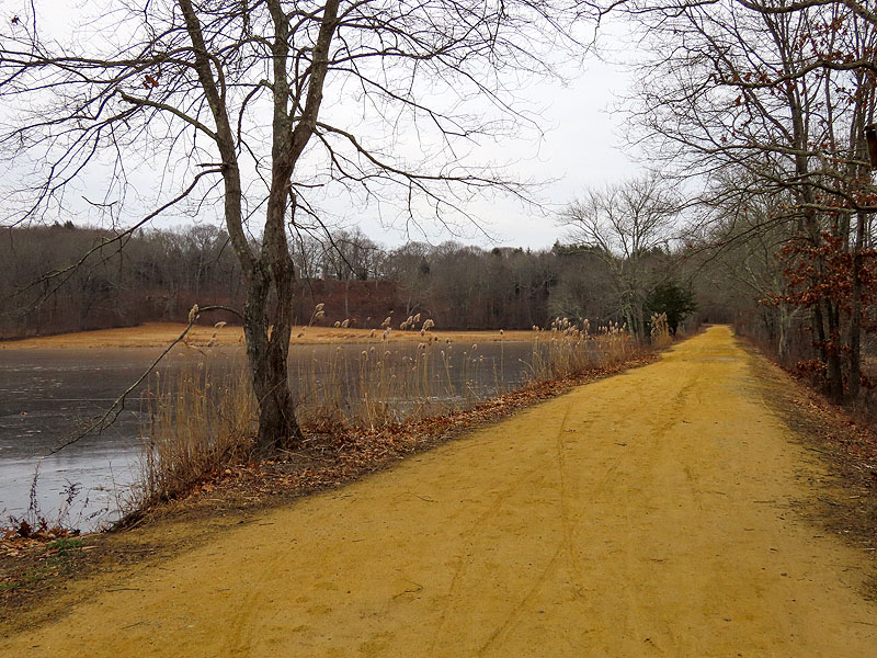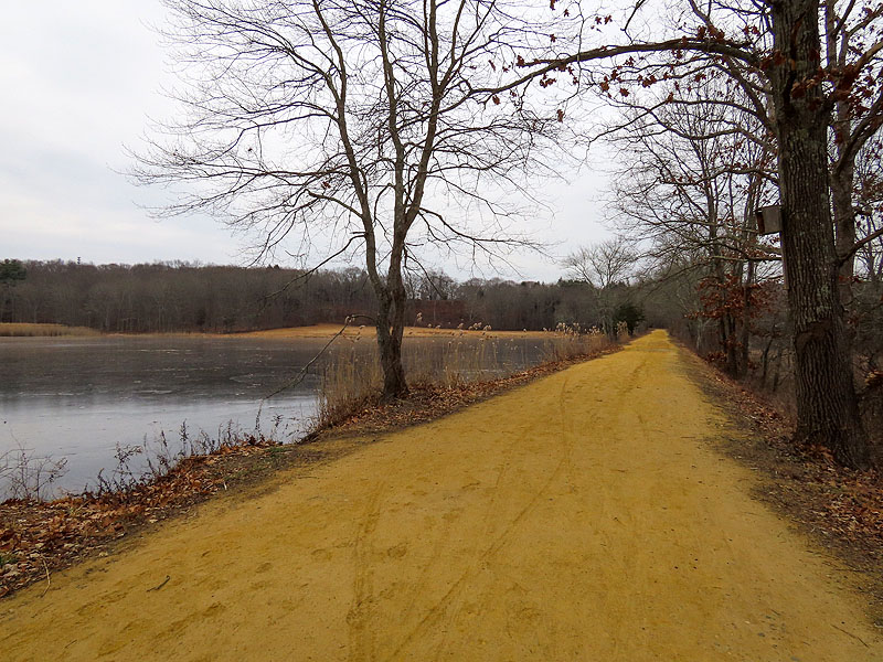 Norton's Pond also frozen. The awful sand/clay surface is a mess when sun warms and melts it.