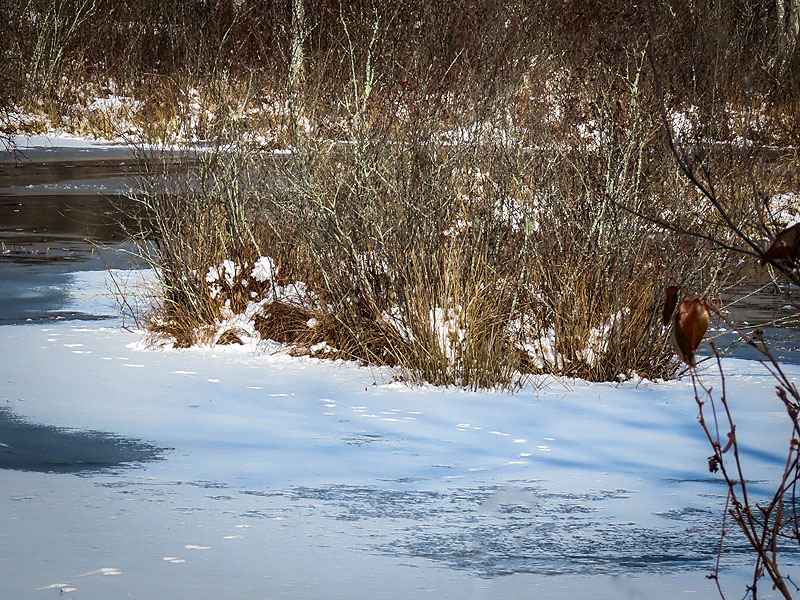A dog or other critter walked the ice not far from Old Colchester Road.