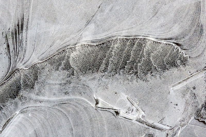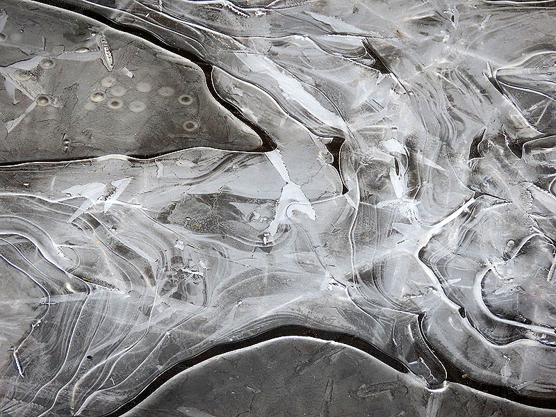 I stopped at Cranberry Bog. Patterns of ice at the edges. More cold needed before hockey will be safe again.