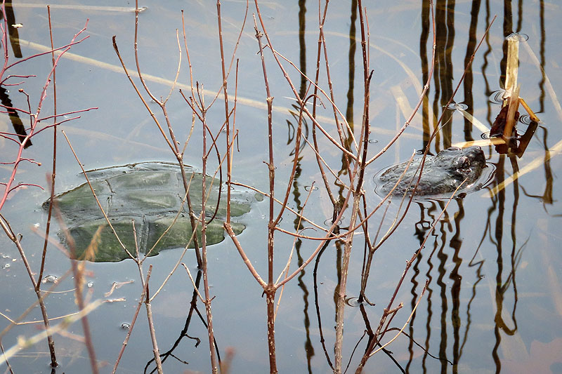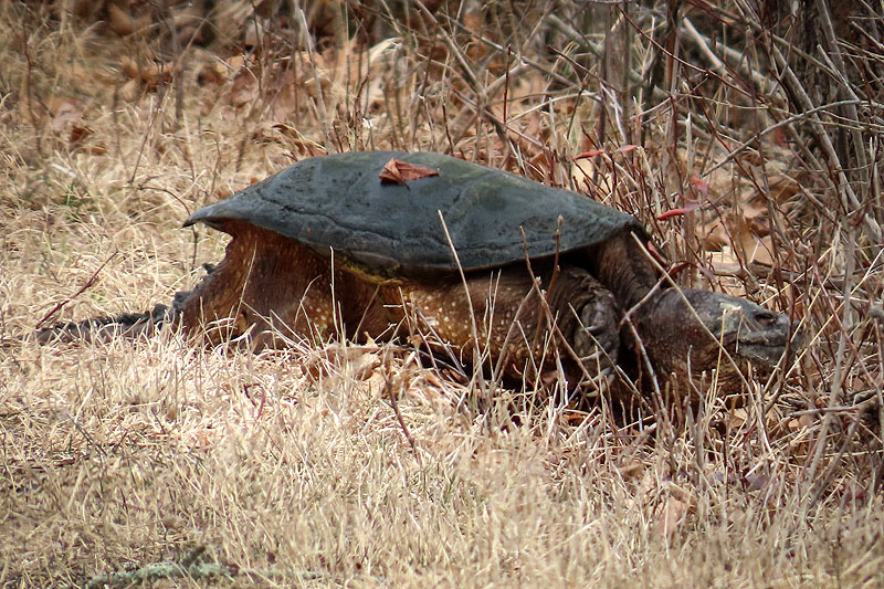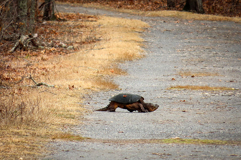 Walking back west, I spotted this Snapping Turtle (Chelydra serpentina) heading across the trail.