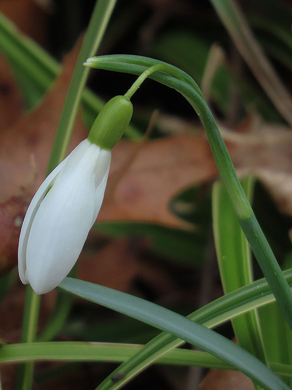 Ornamental Snowdrops (Galanthus nivalis) under the train mural.