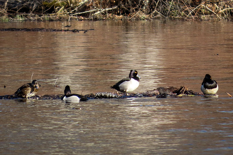 The Buffleheads, plus four Ring-necked Ducks (Aythya collaris).