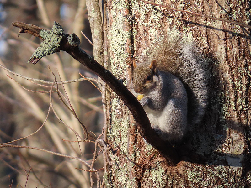 March 29th. Eastern Gray Squirrel (Sciurus carolinensis). Not sure what it's eating. Too big for a corn kernel.