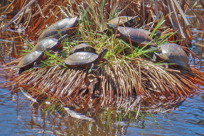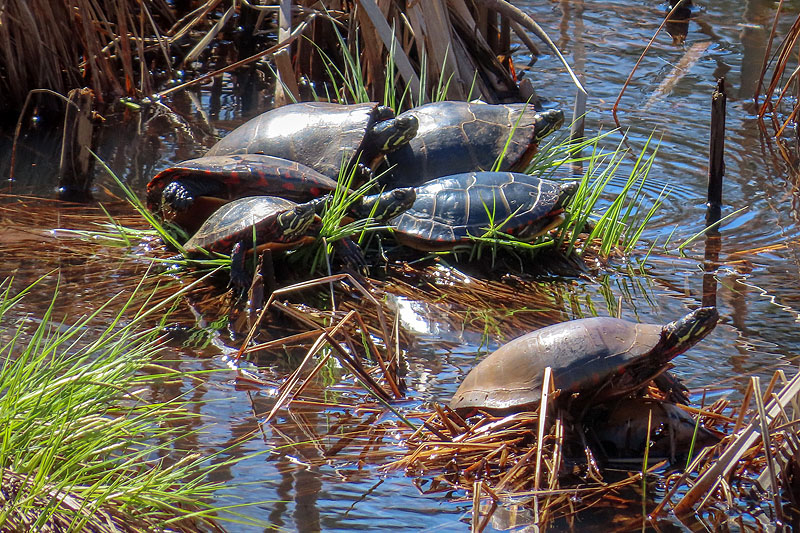 Six Painted Turtles (Chrysemys picta) in the marsh across the trail from Norton's Pond.