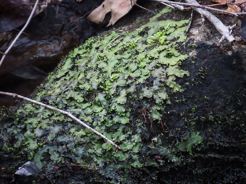 The common thalloid Liverwort (Marchantia polymorpha) just east of Grayville Road.