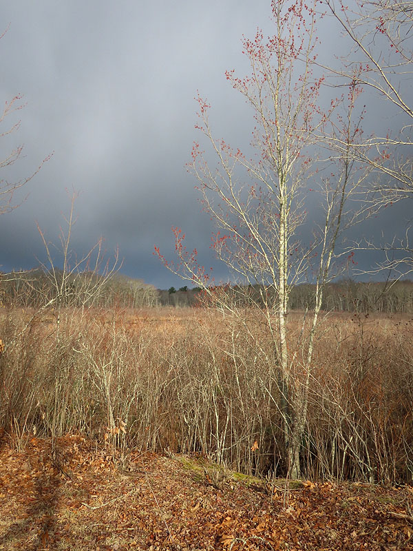 Dark clouds passing by to the north. No rain on the trail but wet roads from Hebron center back to Marlborough.