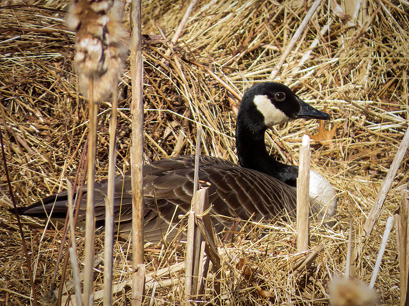 Late afternoon at Cranberry Bog, a female Canada Goose (Branta canadensis) on a nest in the usual spot.