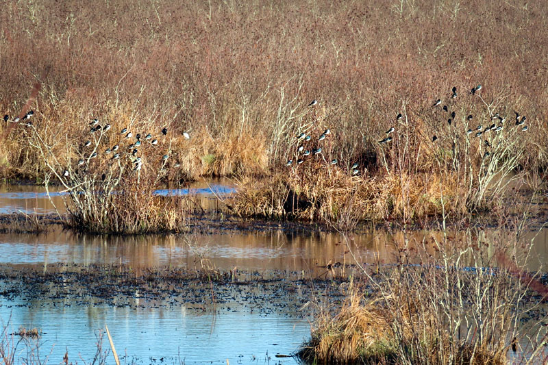 April 8th. The Tree Swallows (Tachycineta bicolor) hanging out together, taking a break from midge hunting.