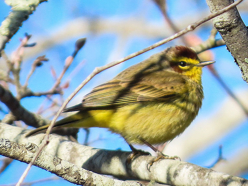 A Warbler, but I'll need help with the species name. Hmm, probably a Palm Warbler (Setophaga palmarum).