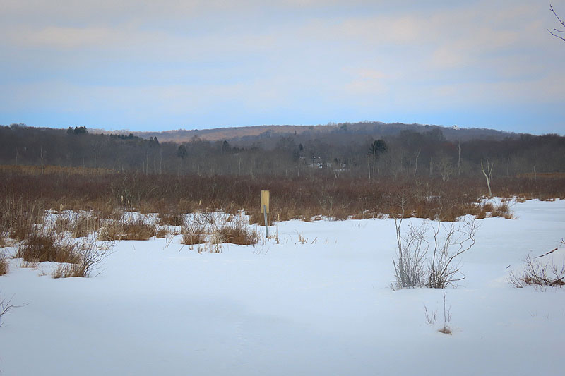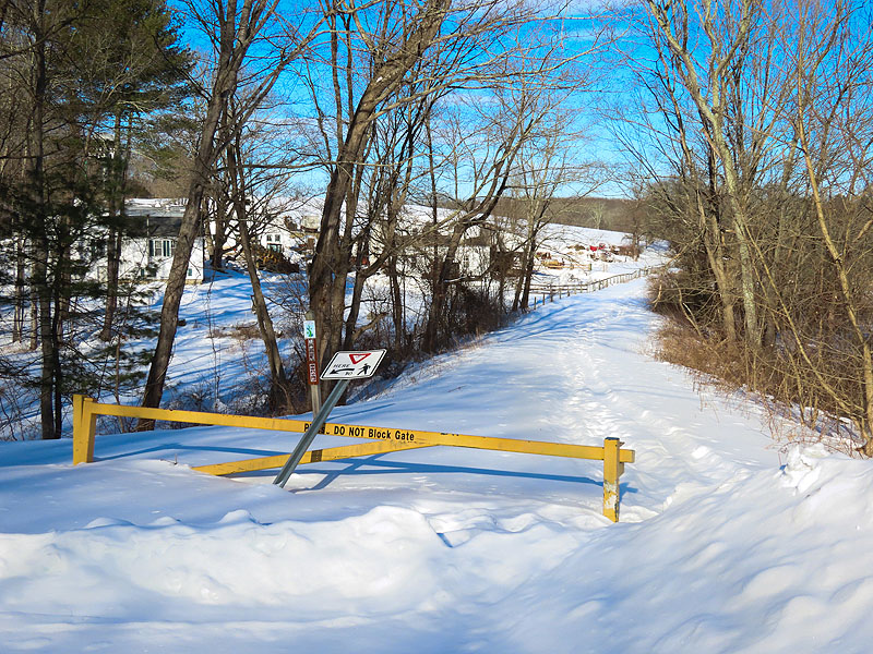 February 9th. A short walk towards the marsh but too tedious to make it all the way. Instead I stopped by Cook Hill Road in Lebanon. Parking area was okay, but snow still deep on the trail and at the gate. Sign damaged. No sign of farm animals of course.