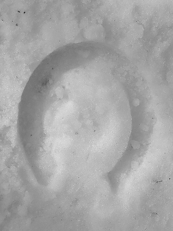 Horse prints on top of the cross country ski trail. (Horse couldn't make a parallel trail?)