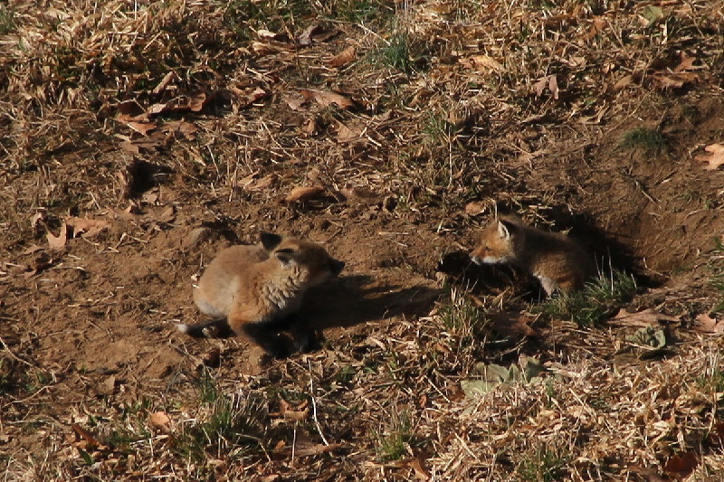 One kit was out near the entrance to the den, alternately wary...