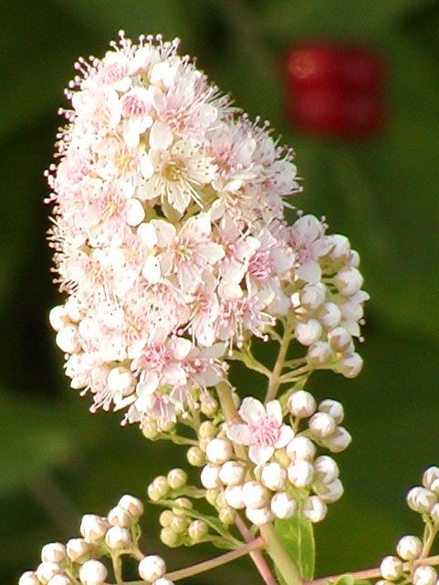 (Spiraea latifolia) tiny flowers clearly place it in the Rose