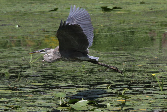 August 10, 2010. Great Blue Heron (Ardea herodius) hunting at Cranberry Bog, East Hampton, CT.