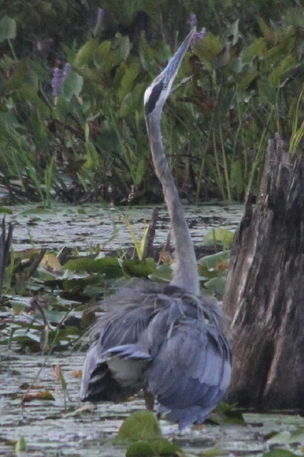 August 31st, 2010. I watched this Great Blue Heron (Ardea herodius) alight and parade back and forth, head pointed skyward.