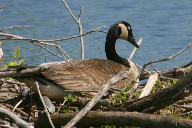 Still incubating her eggs, a Canada Goose closes here eyes for a