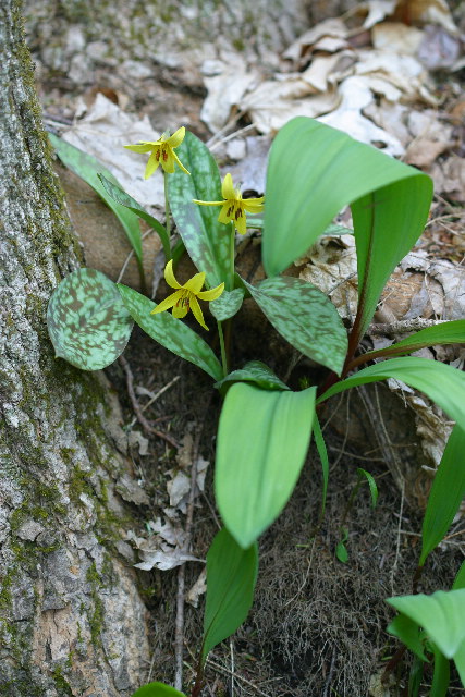 Trout Lilies (Erythronium americanum), also called Dogtooth