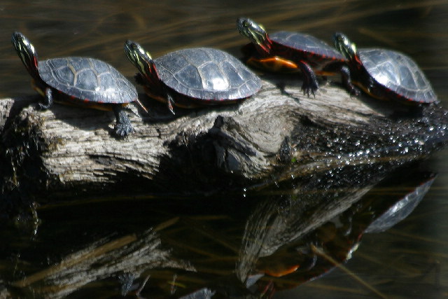 With temperatures around 70 degrees, Painted Turtles (Chrysemys