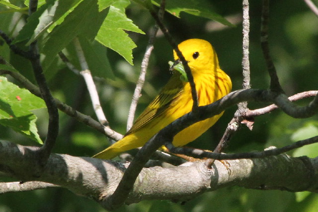 May 26th. A male Yellow Warbler (Dendroica petechia) with a caterpillar.