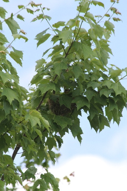 Mid-afternoon on May 28th. Back for better pictures of Orioles coming and going from their nests, starting with a Baltimore Oriole coming...