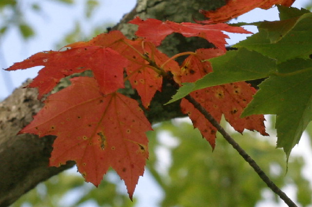 Fall? A few Red Maple (Acer rubrum) leaves have turned early.