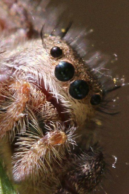 Jumping Spiders are remarkably aware. We played hide and seek around a Goldenrod stem. What great eyes!