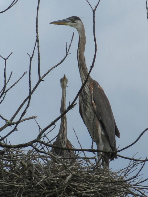 In the afternoon, I visited the Lebanon section and walked in to the heron roost. Young Great Blue Herons (Ardea herodius) are hardly distinguishable from the adults now.