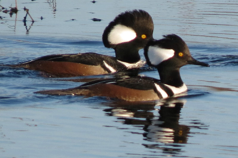 The three Hooded Mergansers (Lophodytes cucullatus) were much closer today.