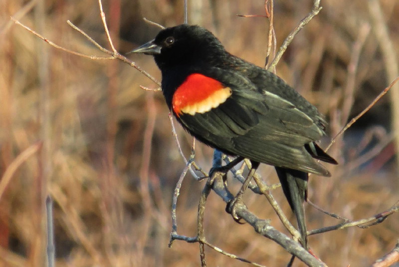 February 25th. Male Red-winged Blackbirds (Agelaius phoeniceus) are more numerous now, and calling closer to the trail through the marsh.