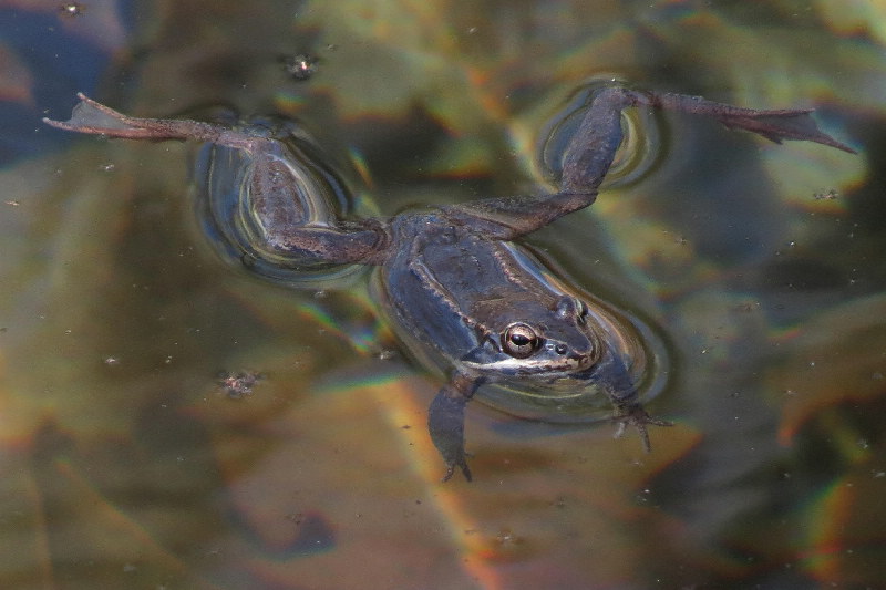 March 8th. Sixtysix degrees this afternoon. Wood Frogs (Rana sylvatica) were paddling around the vernal pool just west of the Jeremy River Bridge. A few males were calling.