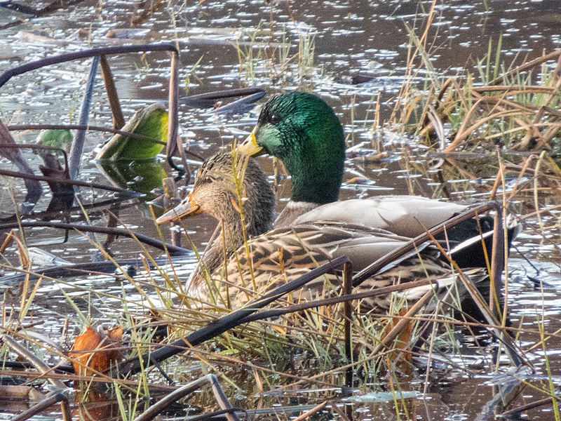 Mallards (Anas platyrhynchos) have gathered on the marsh. They'll be around through the winter whenever there's open water.