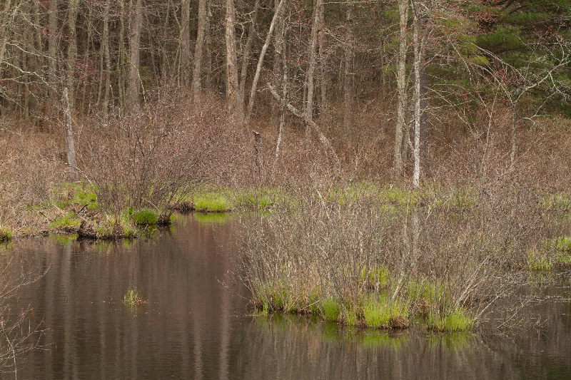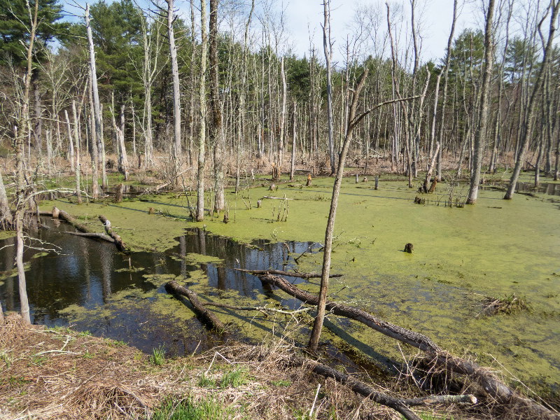 April 15th. An afternoon visit to the heron roost east of Cook Hill Road. At least four nests occupied, but the birds were hunkered down. Maybe incubating eggs?