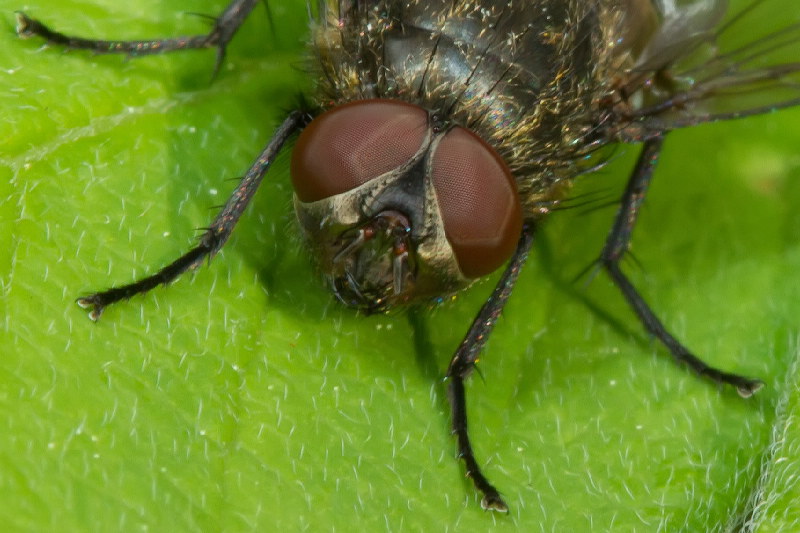 Dew, plus a Flower Fly (Family Syrphidae) and, barely visible, a much smaller fly.