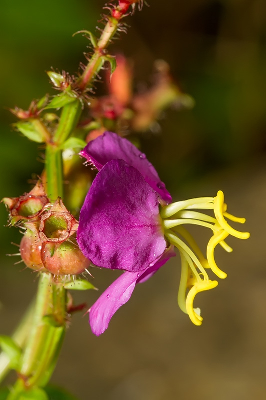 Meadow Beauty, also called Handsome Harry (Rhexia virginica), one of a very few North American species of the mostly tropical family Melastomataceae. The large curved yellow anthers are diagnostic.