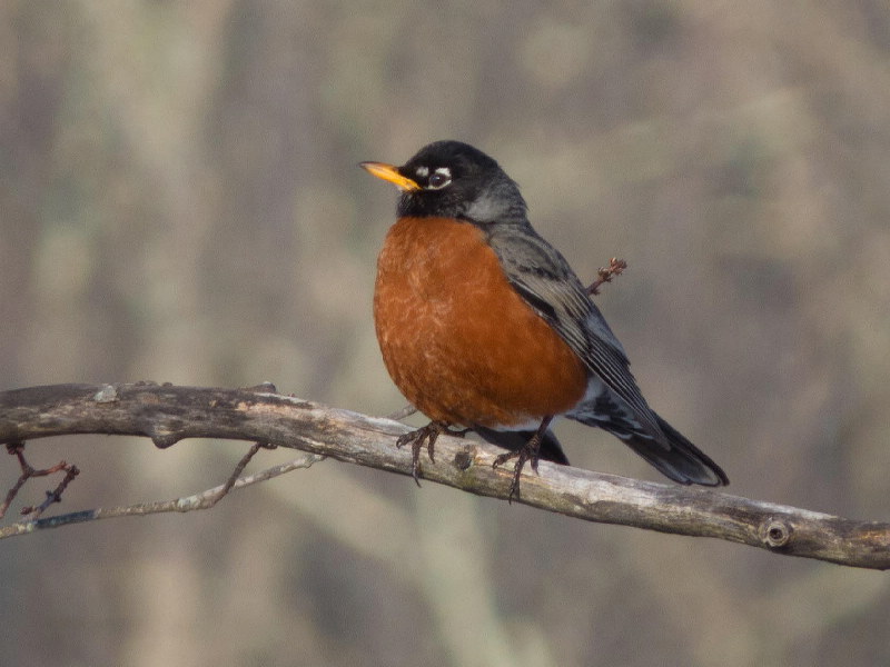 I did much better with a flock (at least 5 birds) of American Robins (Turdus migratorius). The first wildlife I've been able to photograph for months!