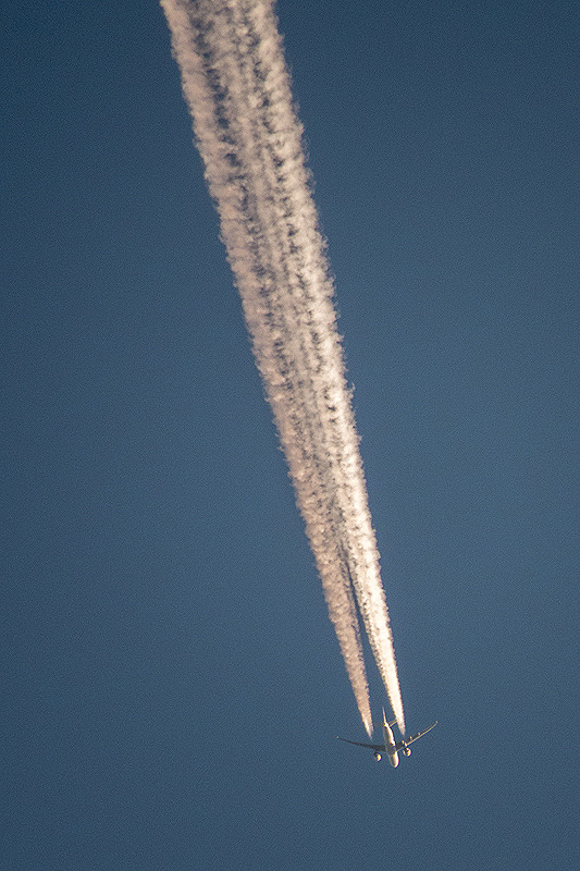 Contrails in the cold air aloft.