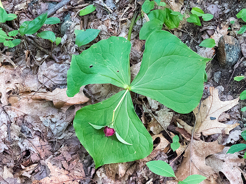 No idea why a Red Trillium (Trillium erectum) would be blooming now. Normally, they're in flower in early spring.