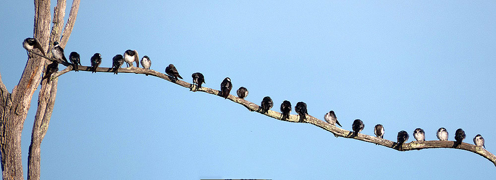 August 10th. Tree Swallows (Tachycineta bicolor) gathering in a favorite dead tree.