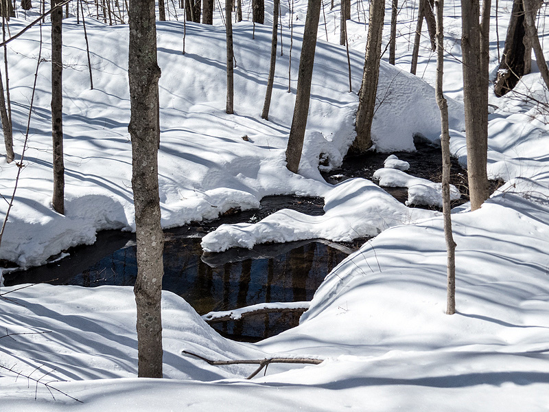 March 7th. Seven degrees. Snowmobiles out last night gave the trail a nice surface for walking.