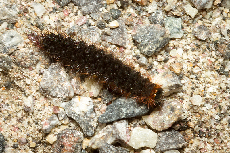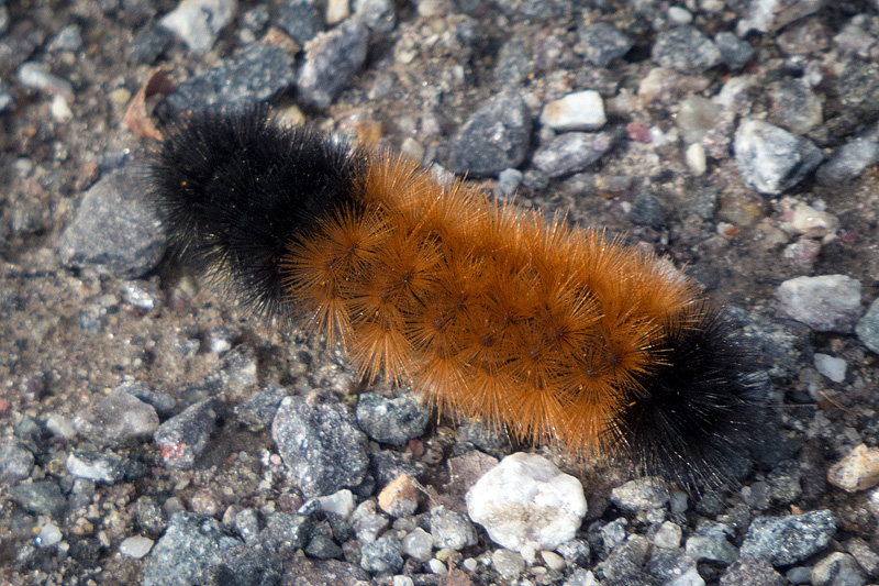 Lots of Woolly Bears (Pyrrharctia isabella) in several sizes, wandering...