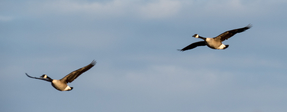 Two pair of Canada Geese (Branta canadensis) took off from the sparse open water.